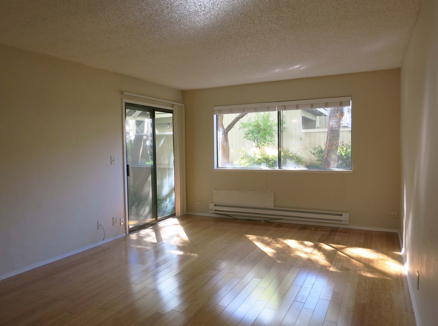 Spacious upstairs 1 bedrooms, 1 bath condo, about 620 sqft. The condo has a fully loaded kitchen. This unit is on the bottom floor of two levels. Onsite commercial washer and dryers at the condominium complex. One reserved carport parking spot is available. Across the street from Santa Clara's Central Park Center & Library.